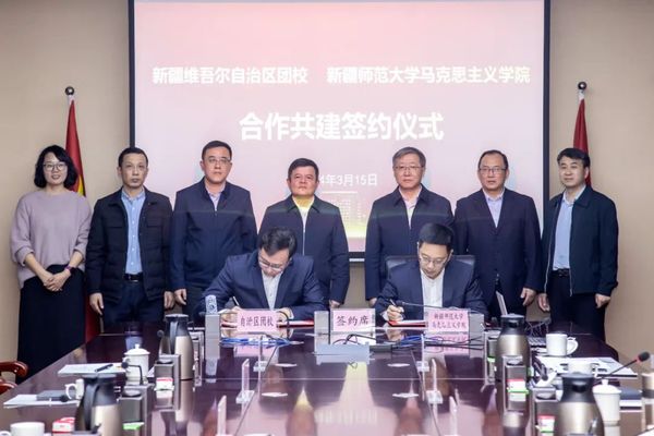 3月15日下午,新疆维吾尔自治区团校与学院合作共建签约仪式在我校行政楼424会议室举行。自治区团委书记艾山江·艾塔洪、校党委书记葛国、自治区团委副书记孟利明出席仪式,自治区团委学校部部长贾云翔、自治区团校校长李博、我校学生工作部(处)处长张进、团委书记陆娇、马克思主义学院党委书记张峥参加仪式。仪式由校党委副书记刘俊主持。