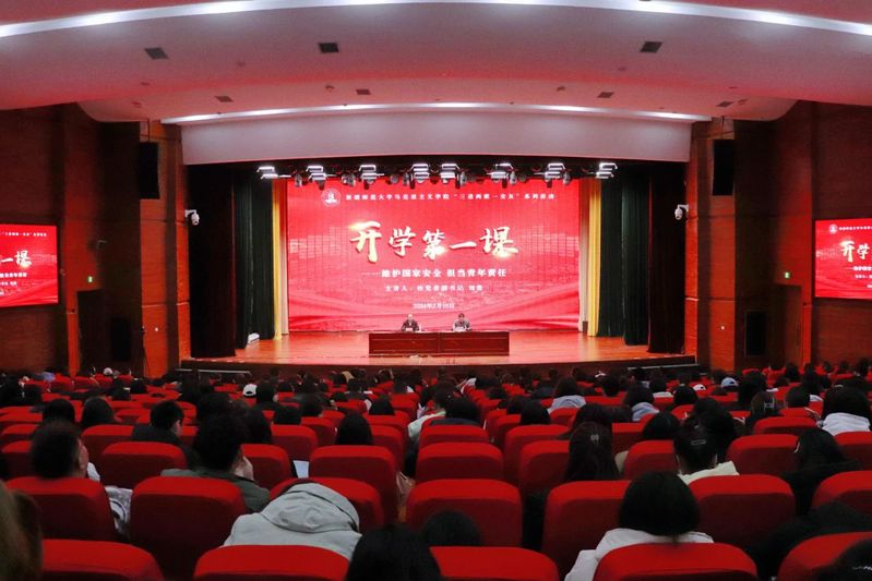为教育引导大学生坚定理想信念、厚植家国情怀,进一步落实总体国家安全观,不断增强广大师生的国家安全意识,增强大学生的责任感和使命感,3月10日晚,校党委副书记刘俊为我院师生讲授题目为《维护国家安全,担当青年责任》的开学第一课。讲座由学院党委书记张峥主持。学院领导班子成员、全体辅导员、学生代表近600余人参加。