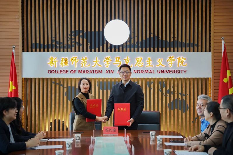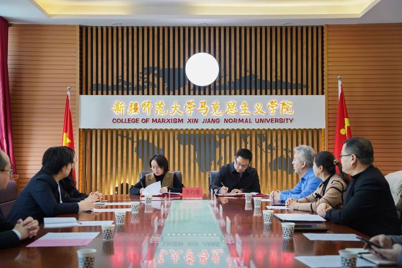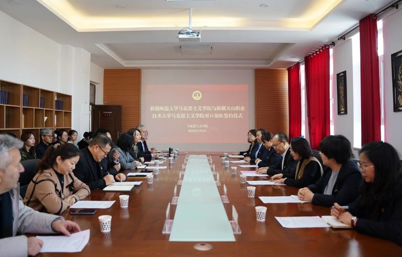 随后,学院党委书记张峥、新疆天山职业技术大学马克思主义学院党支部书记、副院长罗萍代表双方签订对口帮扶协议。根据协议内容,双方将围绕学科建设、师资培训、学术研究、学生交流等方面展开深入合作。