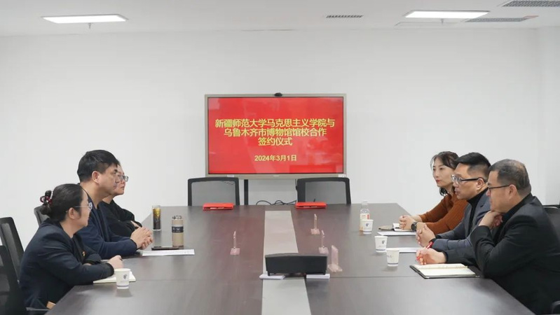 签约仪式上,吐尔逊·克孜拜克对学院一行表示欢迎,他介绍乌鲁木齐市博物馆作为综合性地方博物馆,有着丰富的馆藏资源,博物馆联同八路军驻新疆办事处纪念馆、毛泽民故居、中国工农红军西路军总支队纪念馆、文庙、文昌阁等场馆资源,系统展示和讲述历史文化故事。他表示,此次签约将有利于打通双方优势资源,在深入开展党史课程资源开发、发挥场馆的社会服务和教育功能方面取得新成绩。