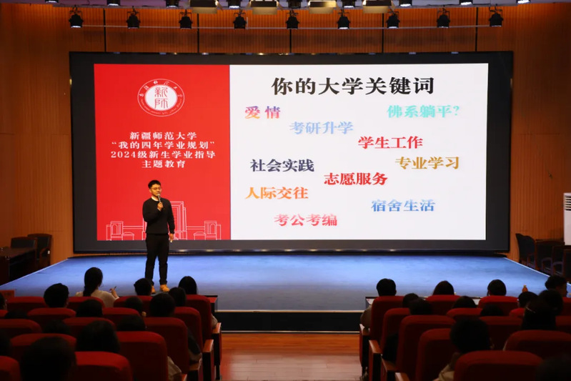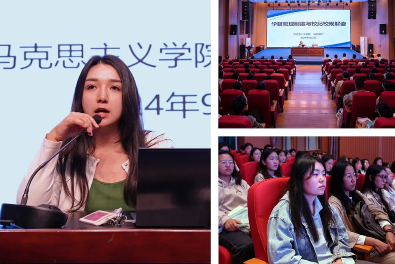 学院辅导员迪丽努尔围绕《新疆师范大学普通本专科学生管理暂行规定》为新生进行校纪校规解读和学籍管理的相关要求,她以生活学习中的小事为例,结合上级法律法规和现实案例,对相关条款逐一进行解读。她希望同学们能做遵纪守法的模范践行者,在大学生活严格要求自我。同时,围绕入学资格审查、学籍档案建立等介绍了学籍管理相关内容。