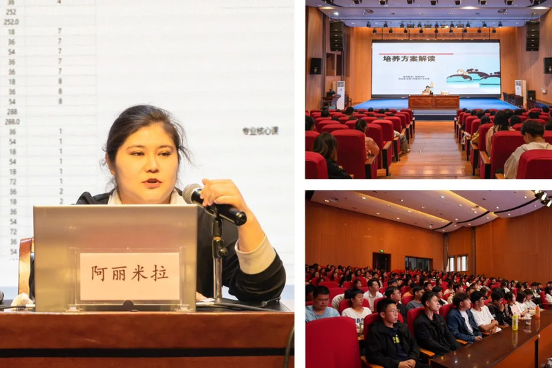 学院教学秘书阿丽米拉·贾马力丁开展“人才培养方案解读”主题入学教育,详细解读了学院2024级本科生的培养方案及教学计划,系统梳理了思想政治教育、马克思主义理论的主要学习科目,详细介绍解读了“学分制”、“辅修第二专业”等政策,激励同学们在学习生活的自我规划中严格要求自己,不断向前发展。