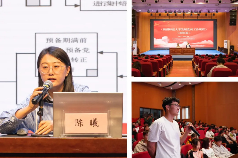 学院组织员陈曦为新生开展“党员发展流程”专题讲座,从《新疆师范大学发展党员工作规程》的指导方针和发展党员的规程两个方面重点展开讲解,为全体大一本科新生进行了详细的解读和梳理。她呼吁青年一代应该凝聚青春力量,志存高远,不负新时代,在不断奋斗和拼搏的人生道路上扬帆起航,不断向伟大的党组织靠拢。