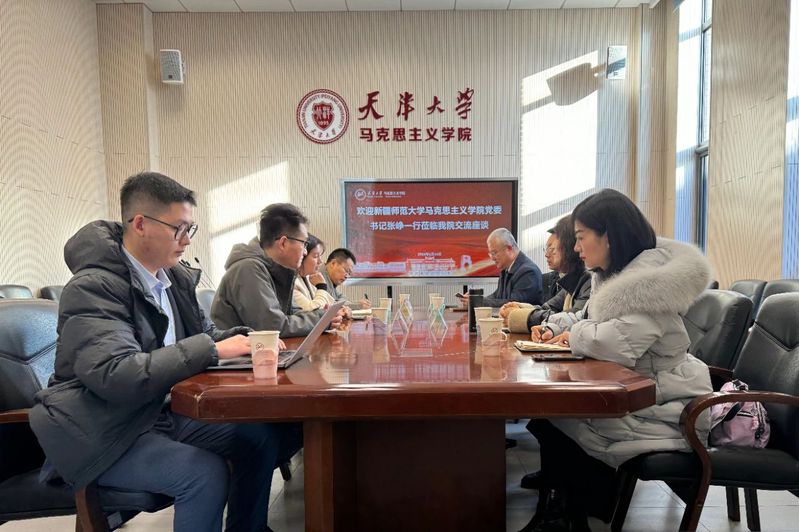 14日上午,张峥一行来到天津大学马克思主义学院开展交流座谈。座谈会上,天津大学马克思主义学院党委书记孙鹤、副院长杨文圣、副院长马明等人介绍了学院历史沿革、建设目标、组织架构等方面基本情况和师资队伍建设、思政课教学工作开展、学术研究成果、学院社会影响力等情况。张峥就我院基本情况、发展沿革、学科建设、发展方向进行了整体介绍,并表示希望双方进一步加强交流合作,携手共谋发展。