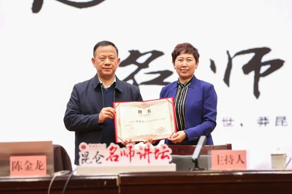 讲座开始前,孙秀玲教授代表学校向陈金龙教授颁发新疆师范大学客座教授聘书。