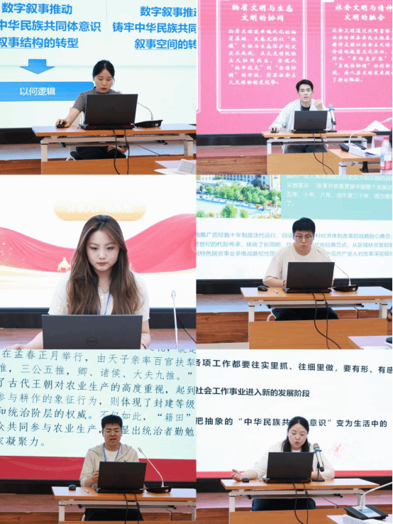 在分论坛汇报环节,23位同学围绕涵盖铸牢中华民族共同体意识、人类文明新形态、马克思主义经典理论研究、生成式人工智能等多个研究方向进行汇报,现场交流气氛活跃。此环节由3003新葡的京博士研究生连馨园主持。点评环节,吴常柏教授、张文龙副教授对同学们的选题价值与理论深度给予肯定,同时针对概念表述、理论阐释、转换路径,以及对如何提升理论成果的现实推广价值等提出建议。